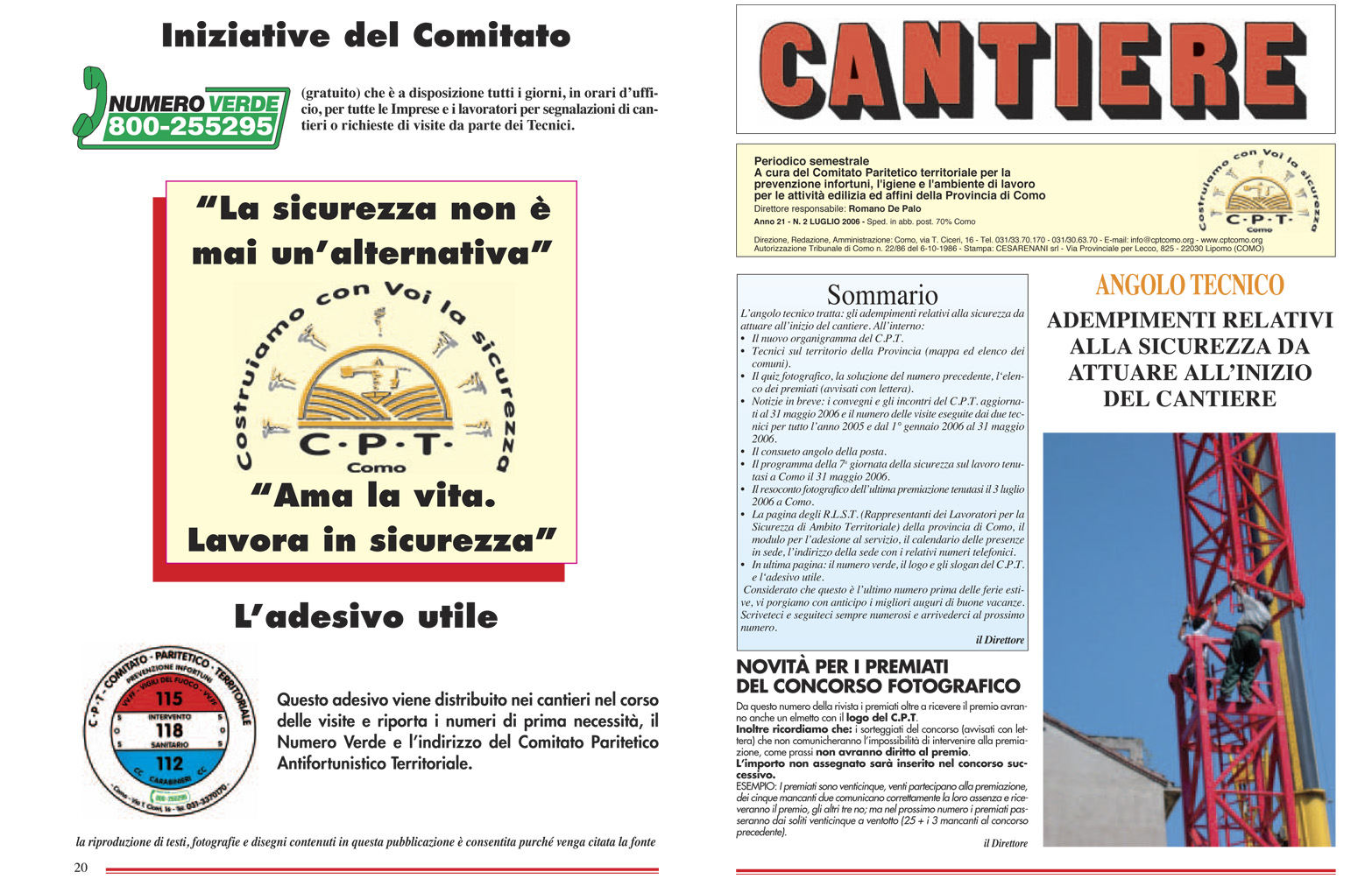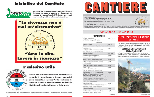 Il "CANTIERE": periodico semestrale a cura del Comitato Paritetico Territoriale per la Prevenzione Infortuni, l'Igiene e l'Ambiente di Lavoro di Como.